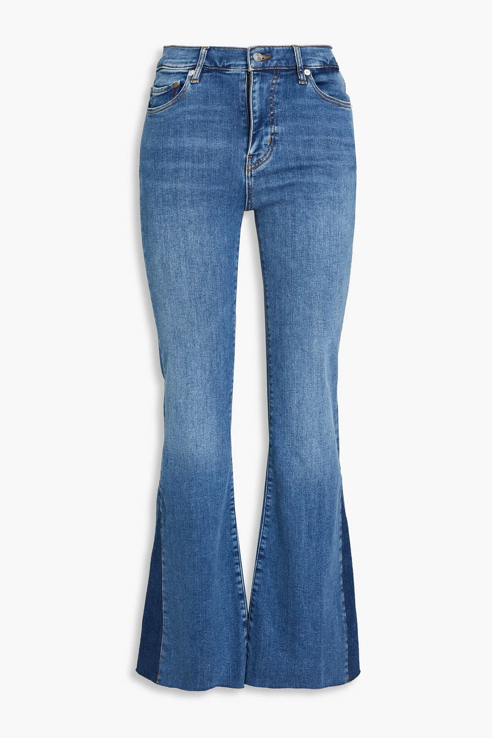 Flared jeans denim belt loops high-rise cut five pockets button and concealed zip fastening at front raw-cut cuffs mid-weight, non-stretchy fabric machine wash imported 63% Organic Cotton 27% Cotton 5% Elastane 5% Recycled polyester Product Code 1647597359576534