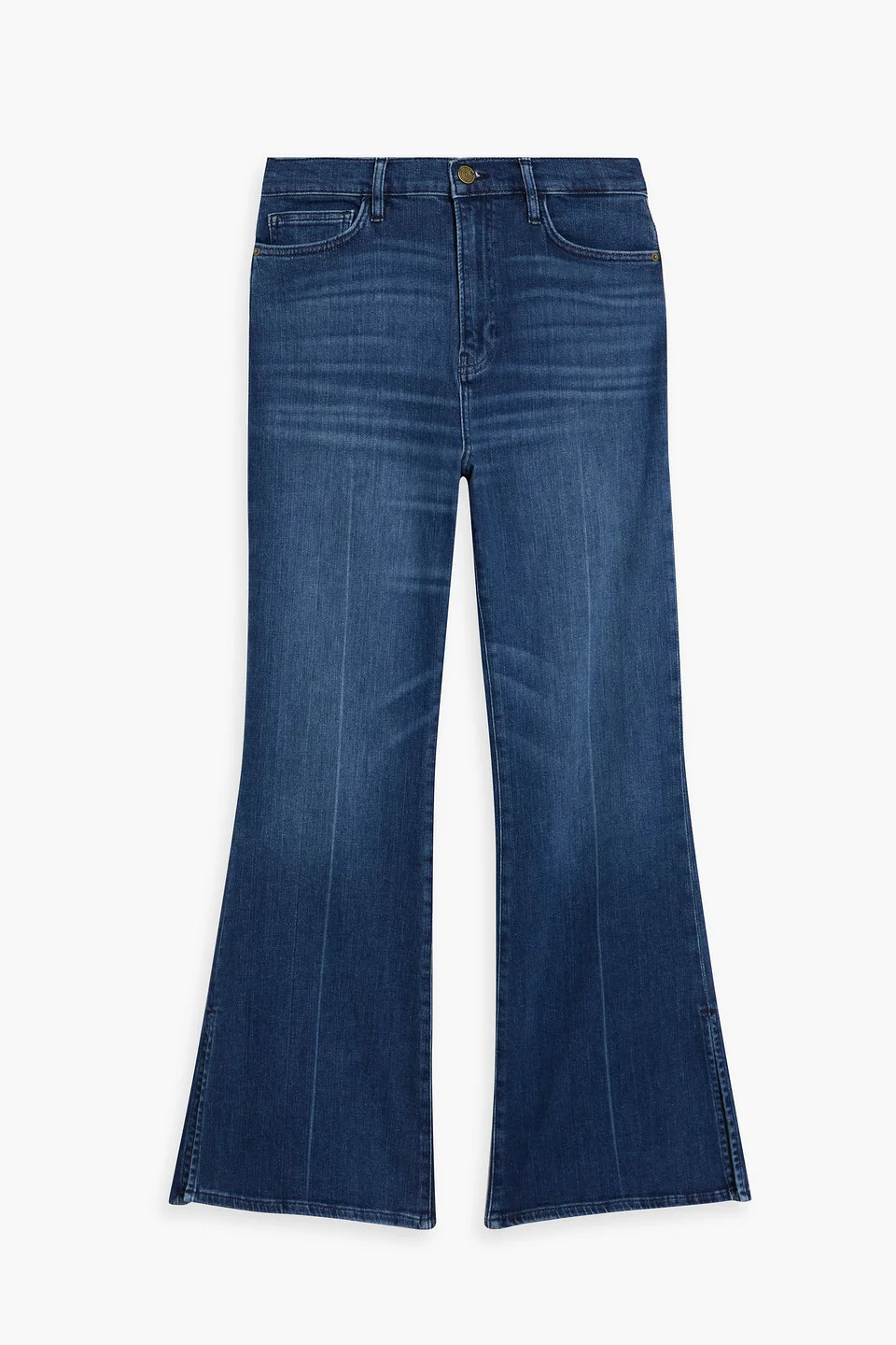 Flared jeans denim belt loops high-rise cut five pockets button and concealed zip fastening at front mid-weight, slightly stretchy fabric machine wash imported 77% Cotton 19% Rayon 3% Elasterell-p 1% Elastane Product Code 1647597338600449
