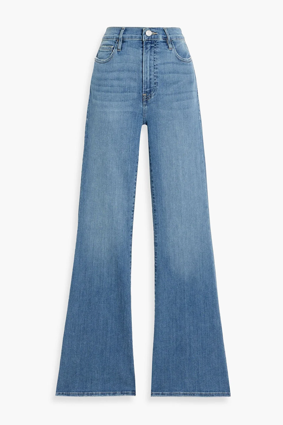 Flared jeans denim belt loops high-rise cut five pockets button and concealed zip fastening at front mid-weight, slightly stretchy fabric machine wash or dry clean imported 90% Cotton 6% Elasterell-p 4% Elastane Product Code 46376663162924827