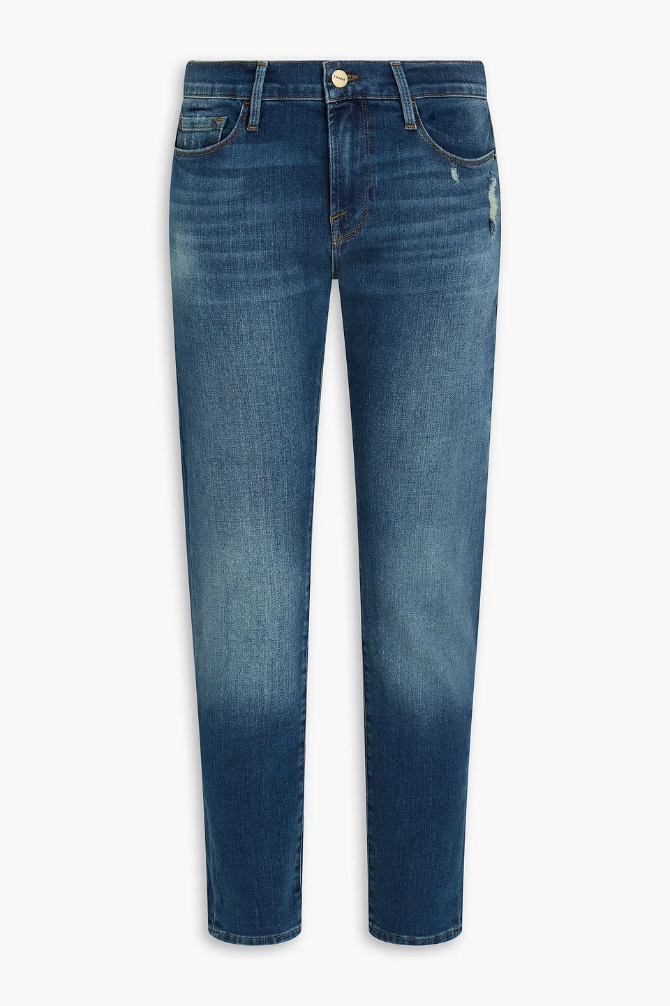 Boyfriend jeans faded denim distressed trims belt loops mid-rise cut five pockets button and concealed zip fastening at front mid-weight, slightly stretchy fabric machine wash imported 93% Cotton 6% Polyester 1% Elastane Product Code 15546005222302548