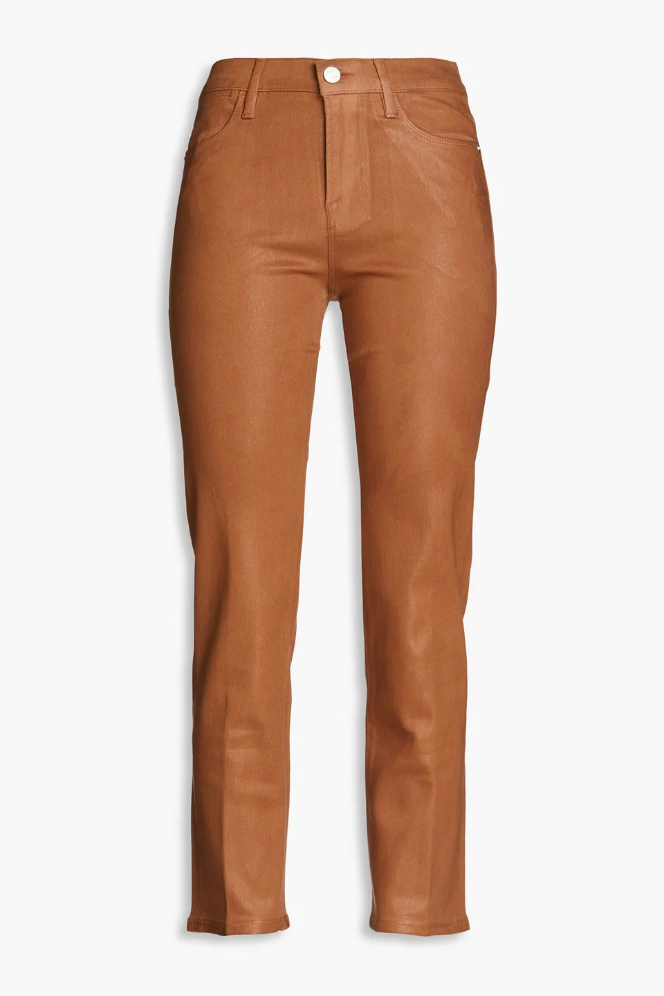 Straight-leg jeans denim coated cropped belt loops high-rise cut multipockets button and concealed zip fastening at front stretchy fabric mid-weight fabric dry clean imported 91% Cotton 6% Polyester 3% Elastane Product Code 1647597317918166