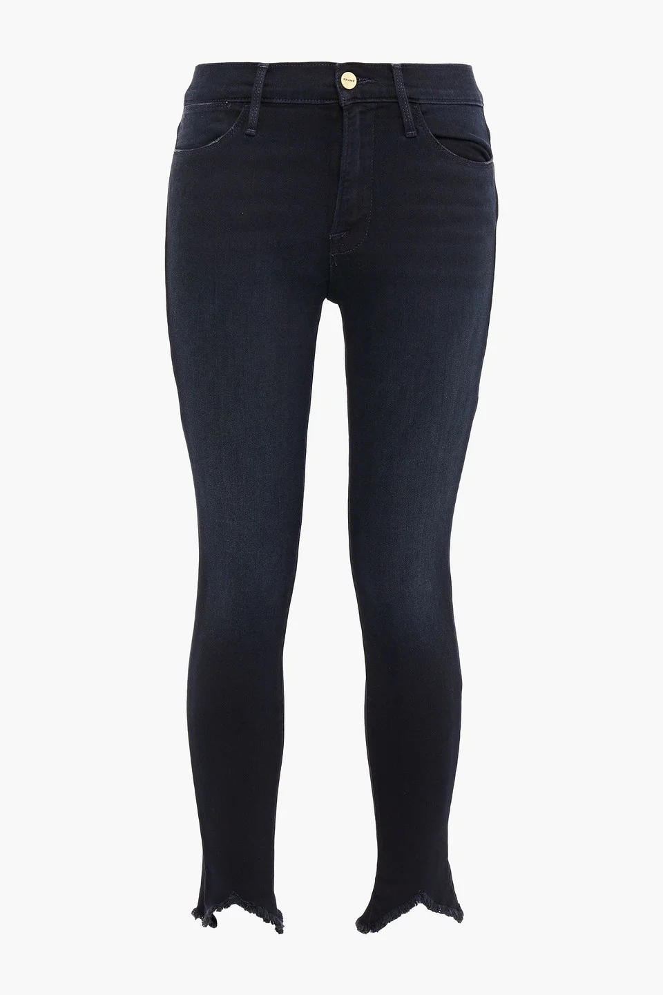 Skinny jeans denim cropped multipockets belt loops high-rise cut button and concealed zip fastening at front frayed hem stretchy fabric mid-weight fabric machine wash imported 94% Cotton 4% Polyester 2% Elastane Product Code 16301891330407431
