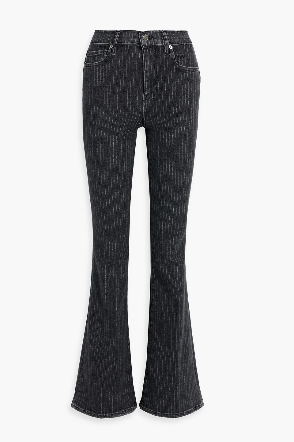 Flared jeans pinstriped denim belt loops high-rise cut five pockets button and concealed zip fastening at front mid-weight, slightly stretchy fabric machine wash imported 92% Cotton 4% Elastane 4% Polyester Product Code 46376663162941226