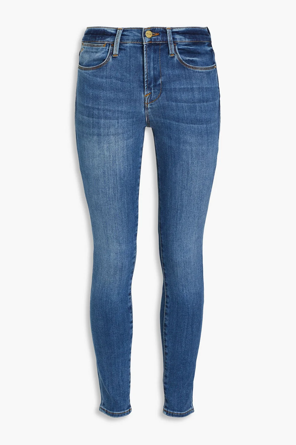 Skinny jeans denim distressed trims belt loops high-rise cut five pockets button and concealed zip fastening at front mid-weight, stretchy fabric machine wash or dry clean imported designer wash: poe 44% Cotton 42% Lyocell 13% Polyester 1% Elastane Product Code 8378037991351615