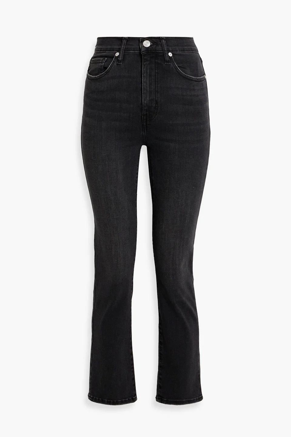 Straight-leg jeans denim belt loops high-rise cut five pockets button and concealed zip fastening at front mid-weight, slightly stretchy fabric machine wash imported Frame's 'The Ruler Crop' jeans have a high-rise cut and classic straight leg. The dark wash looks great with everything , so grab a pair now before they're gone. 90% Cotton 6% Elasterell-p 4% Elastane Product Code 46376663163119061