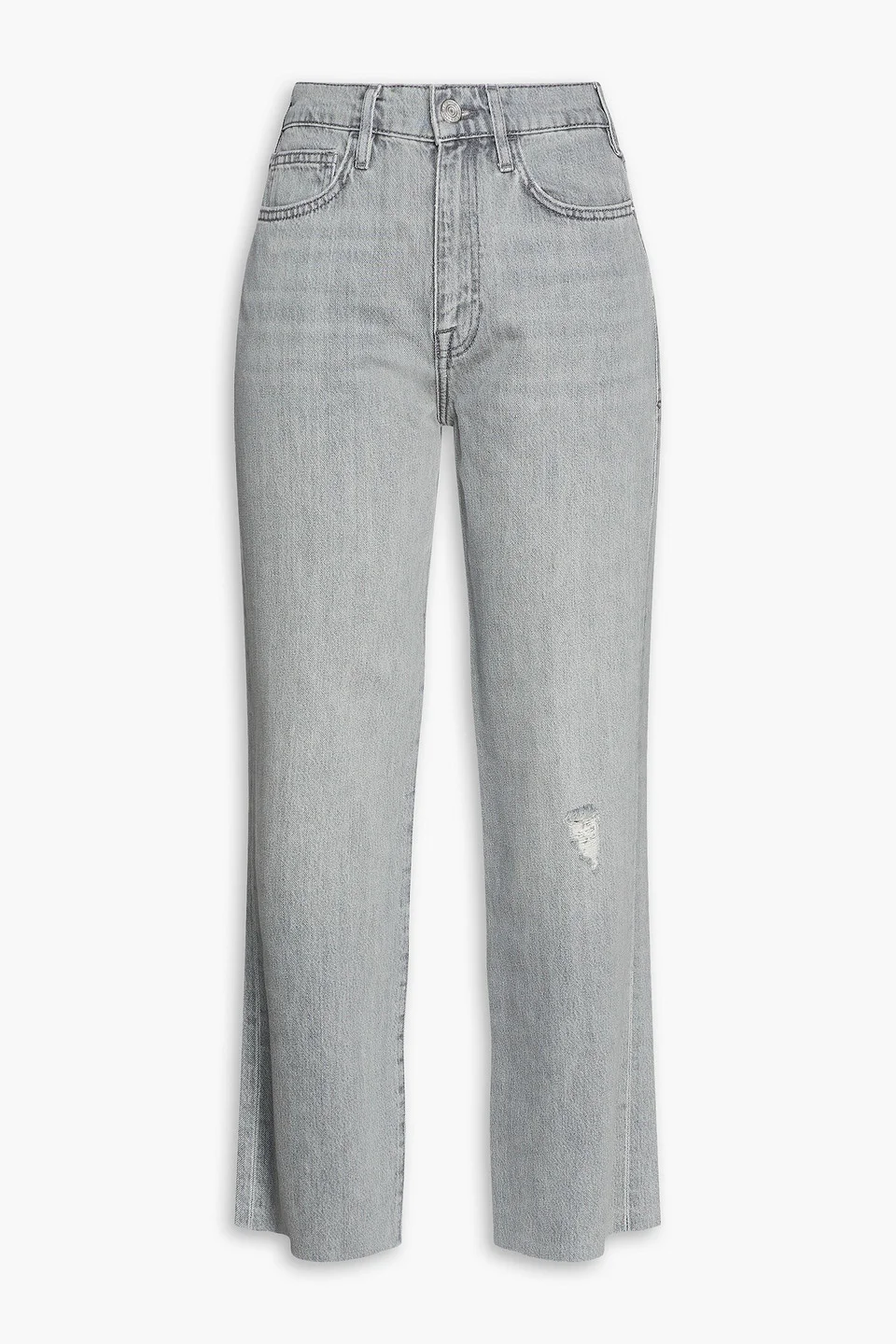 Straight-leg jeans denim distressed cropped belt loops high-rise cut five pockets button and concealed zip fastening at front mid-weight, stretchy fabric machine wash or dry clean imported 60% Organic Cotton 40% Lyocell Product Code 1647597290837690