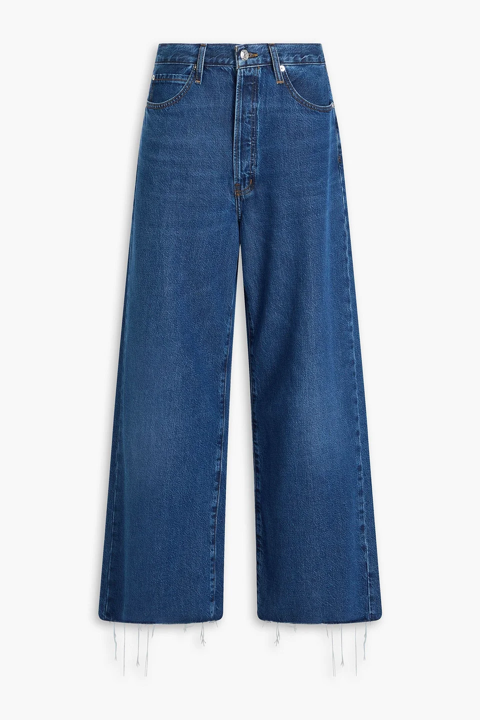 Wide-leg jeans denim low-rise cut five pockets partially concealed button fastenings along front raw-cut cuffs mid-weight, non-stretchy fabric machine wash imported 75% Organic Cotton 25% Recycled Lyocell Product Code 1647597350117432