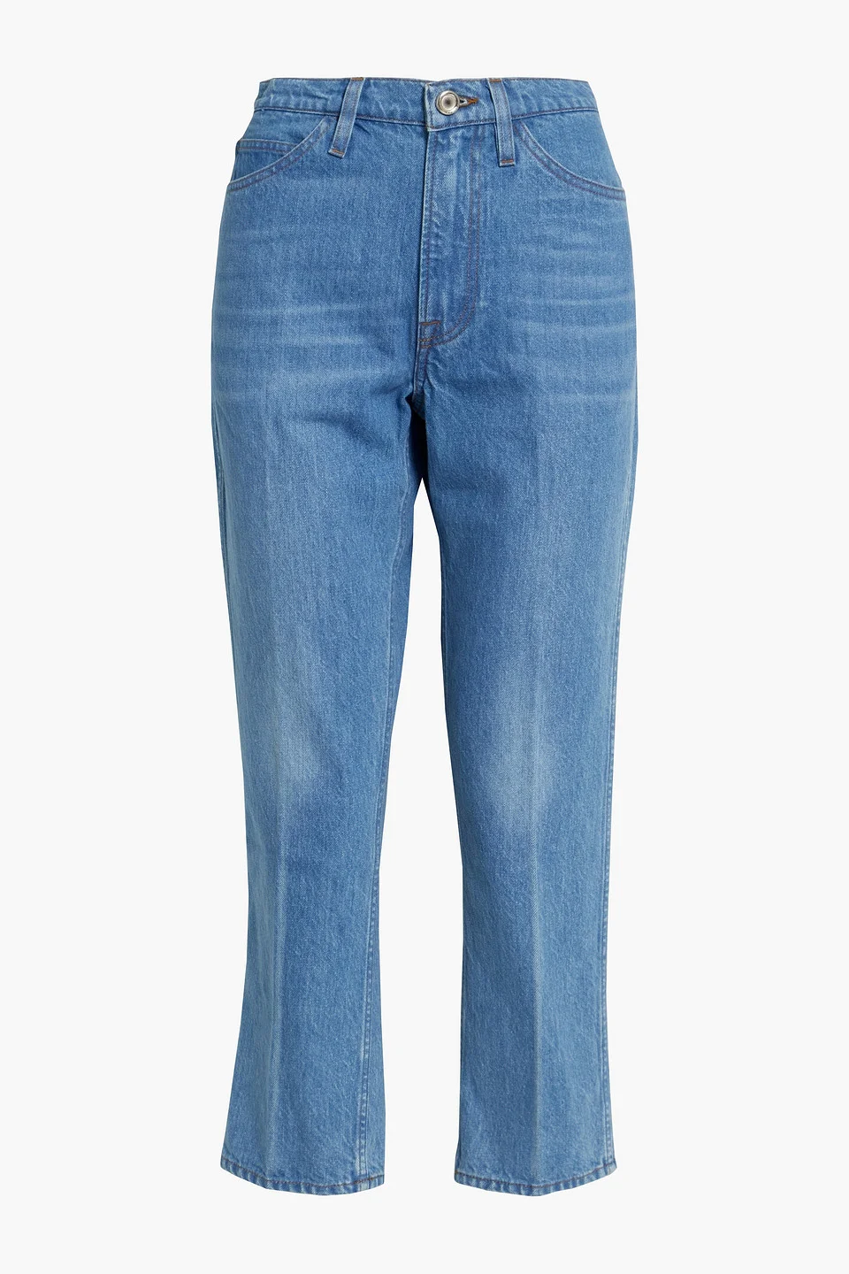 Straight-leg jeans faded denim pressed creases cropped belt loops mid-rise cut multipockets button and concealed zip fastening at front slightly stretchy fabric mid-weight fabric machine wash made in italy 100% Cotton Product Code 1647597283643918