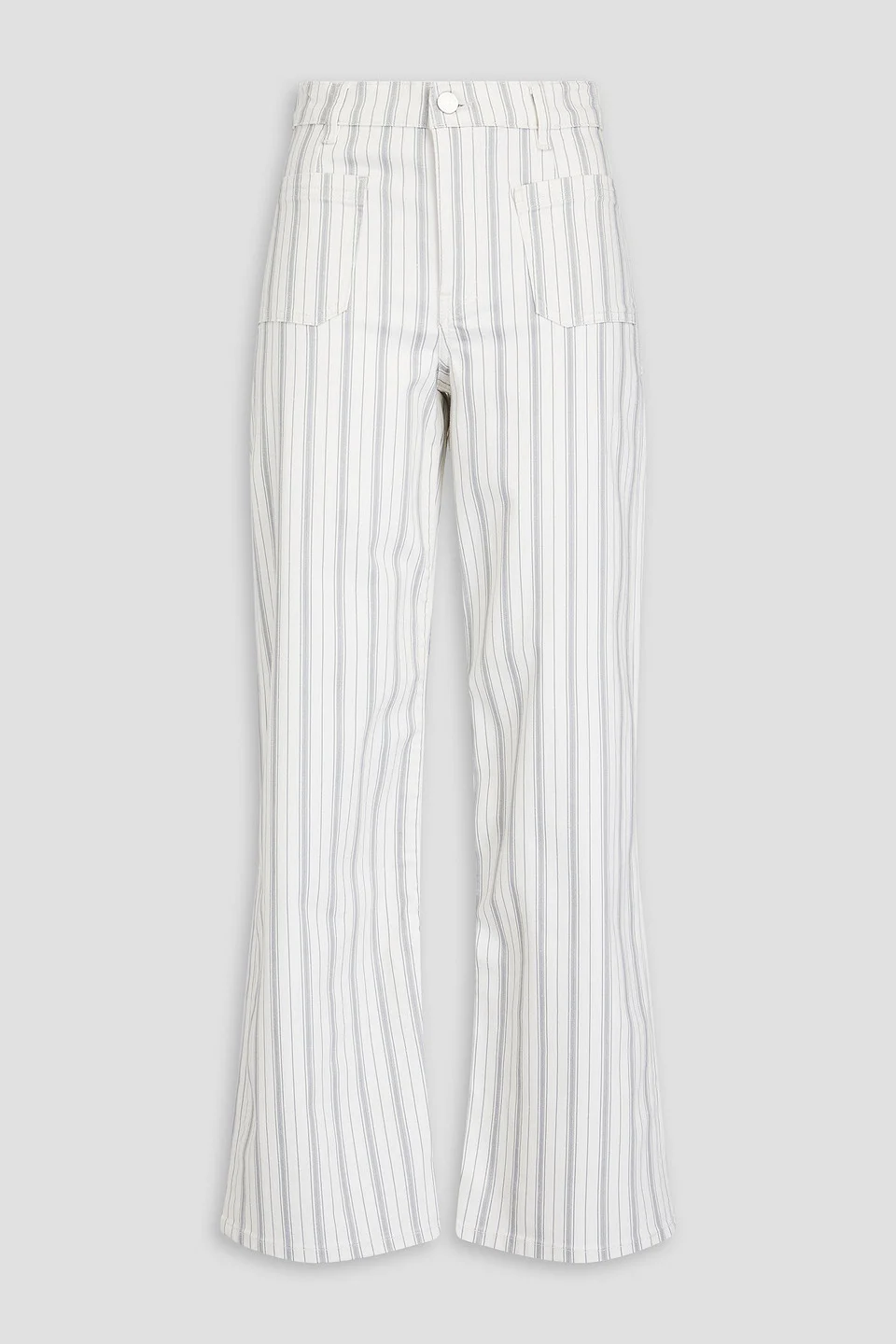 Wide-leg jeans striped denim belt loops high-rise cut two front patch pockets two back patch pockets button and concealed zip fastening at front mid-weight, stretchy fabric machine wash imported 91% Cotton 6% Polyester 3% Elastane Product Code 1647597333094227