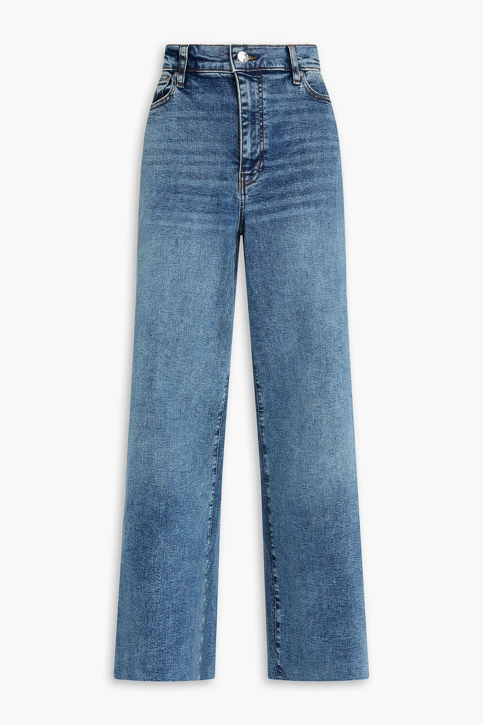 Wide-leg jeans faded denim belt loops high-rise cut five pockets button and concealed zip fastening at front raw-cut cuffs mid-weight, slightly stretchy fabric machine wash designer wash: rowley raw after imported 49% Cotton 21% Pre-consumer recycled cotton 17% Post-consumer P.e.t. recycled polyester 11% Lyocell 2% Elastane Product Code 46376663162976121