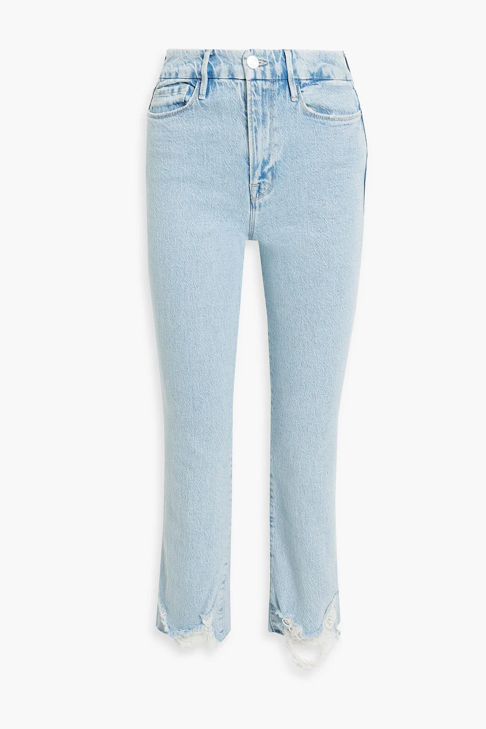 Bootcut jeans denim distressed cropped belt loops multipockets button and concealed zip fastening at front slightly stretchy fabric mid-weight fabric machine wash imported 77% Cotton 22% Lyocell 1% Spandex Product Code 1647597321926387
