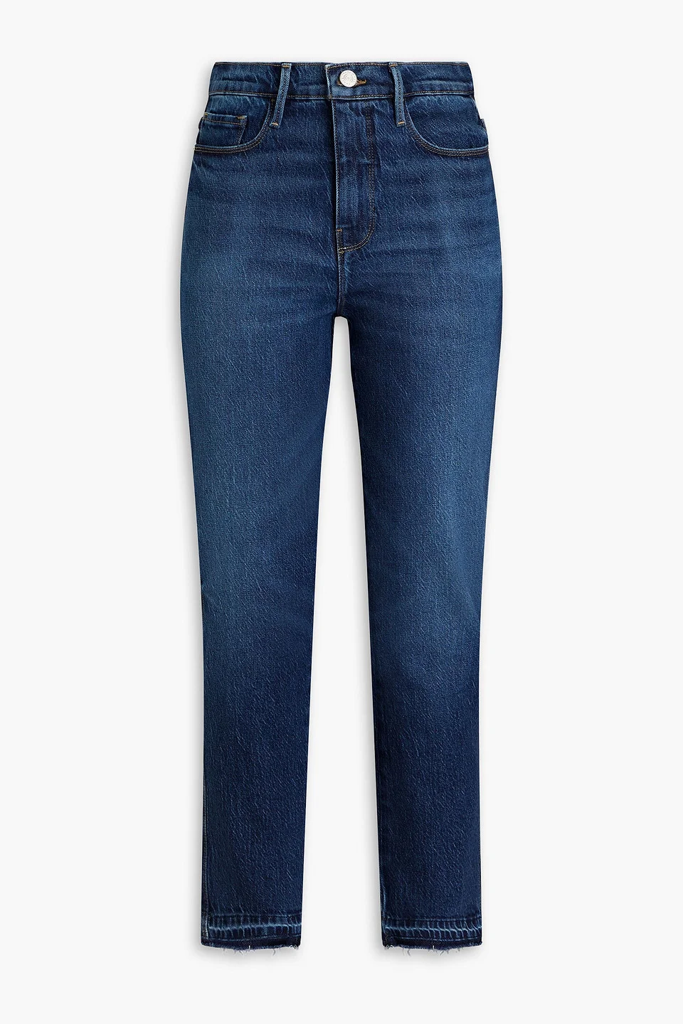 Straight-leg jeans denim cropped high-rise cut multipockets concealed button and zip fastening at front frayed cuffs mid-weight, non-stretchy fabric machine wash or dry clean imported 77% Cotton 22% Lyocell 1% Elastane Product Code 1647597331417496