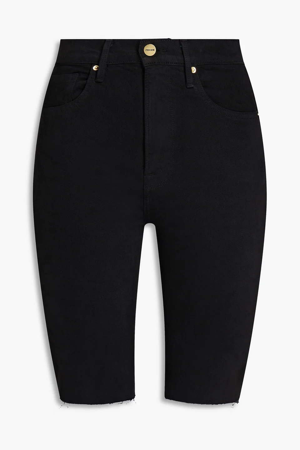 Shorts denim belt loops high-rise cut five pockets frayed cuffs button and concealed zip fastening at front mid-weight, slightly stretchy fabric machine wash imported 99% Cotton 1% Elastane Product Code 17428787258758192