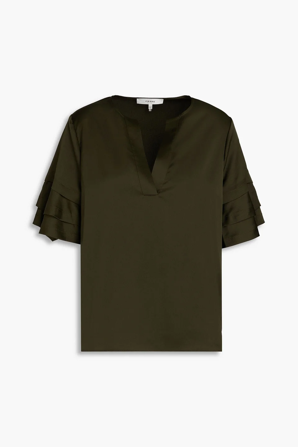 Tiered Ruffle Short Sleeve Blouse in Willow Green