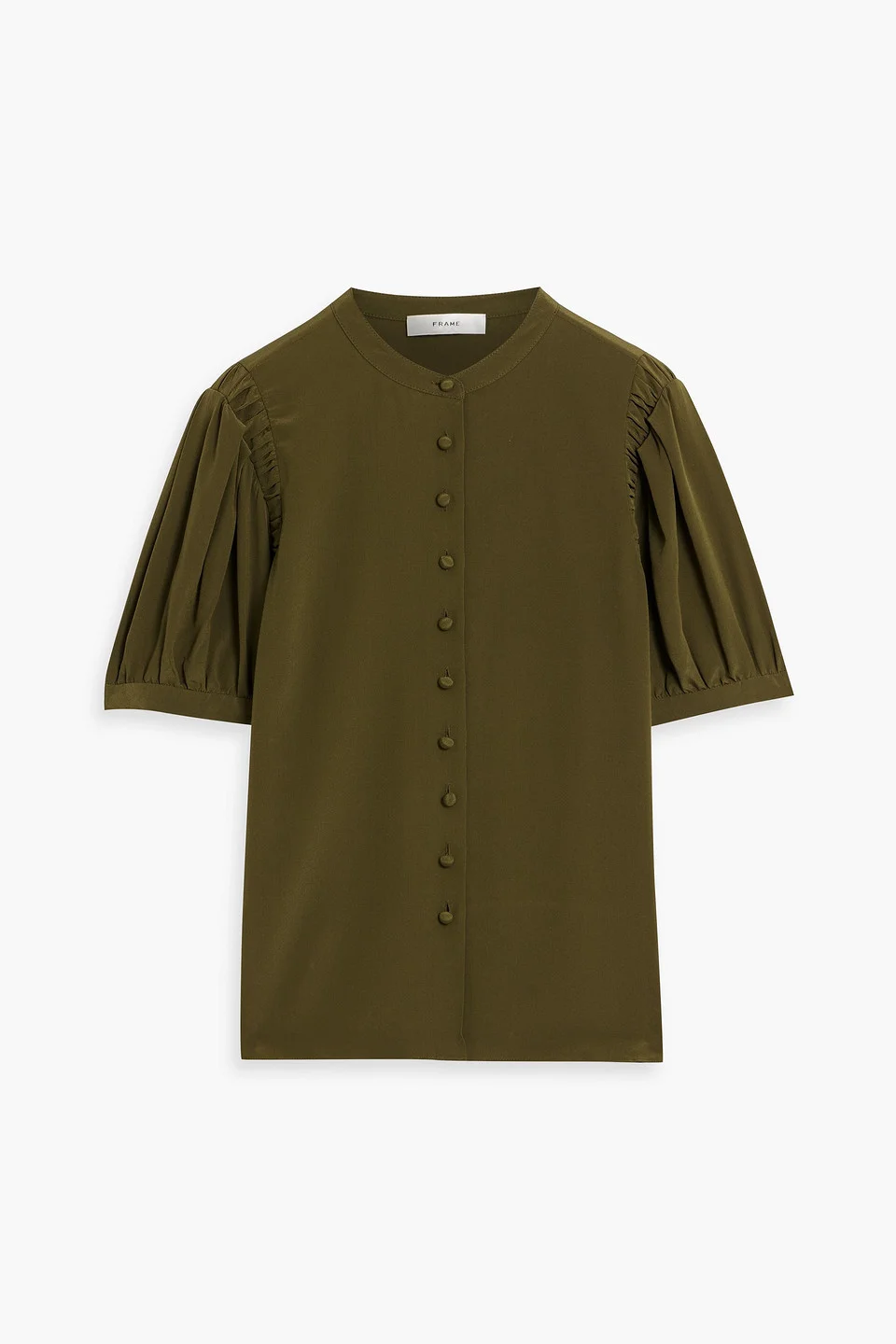 Top silk crepe de chine gathered sleeves button fastenings through front mid-weight, non-stretchy fabric dry clean imported 100% Silk Product Code 46376663163001099