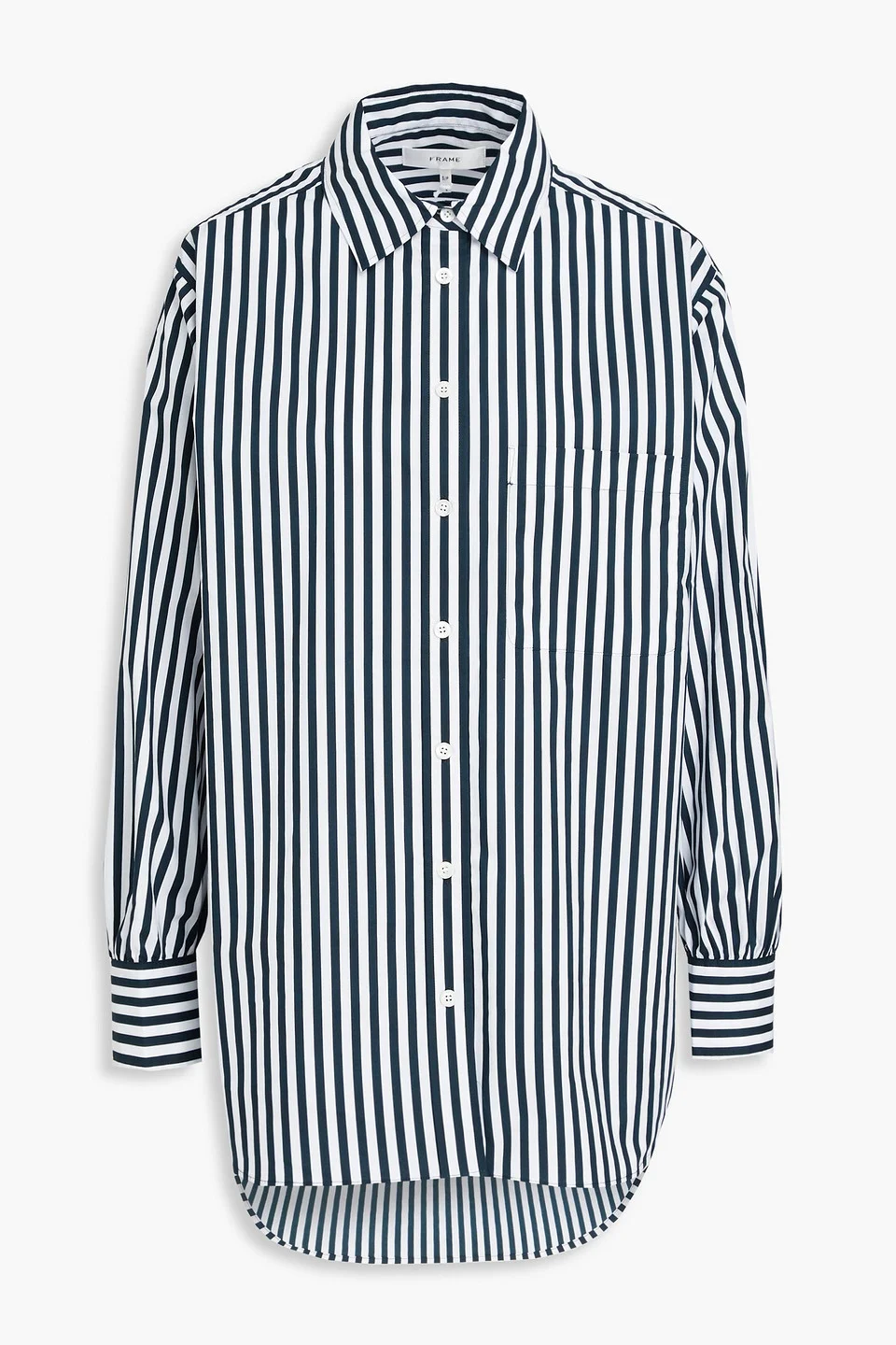 Shirt striped cotton-poplin pleated back buttoned cuffs breast pocket dipped back hem button fastenings through front mid-weight, non-stretchy fabric machine wash or dry clean imported 100% Organic Cotton Product Code 1647597352158409