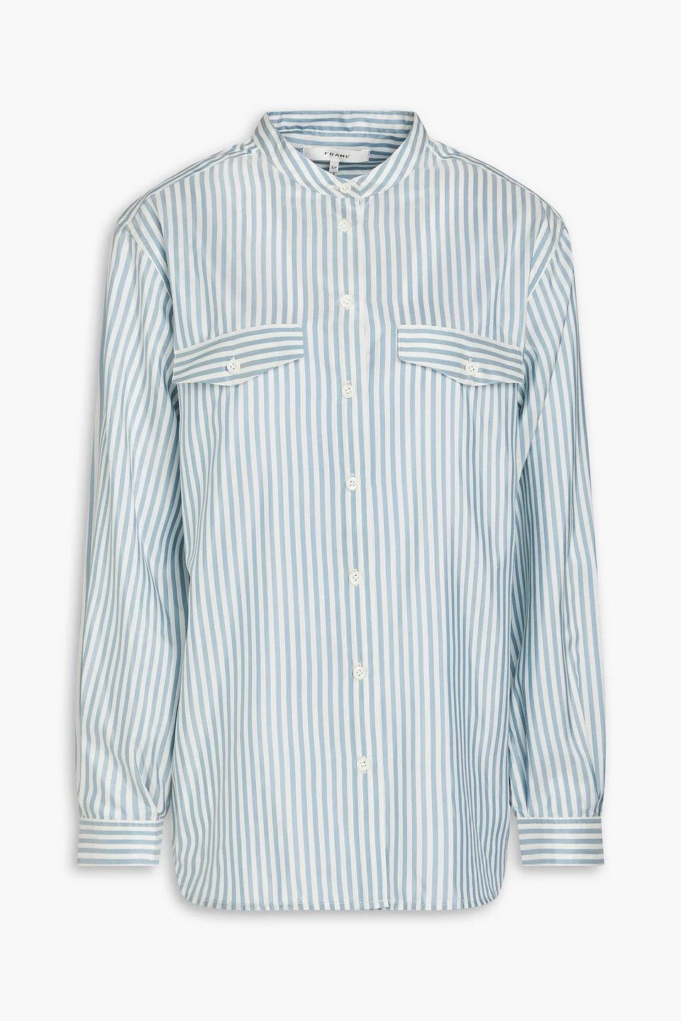 Shirt striped silk-satin buttoned cuffs faux pockets dipped back hem button fastenings through front mid-weight, non-stretchy fabric dry clean imported 100% Silk Product Code 1647597351288583