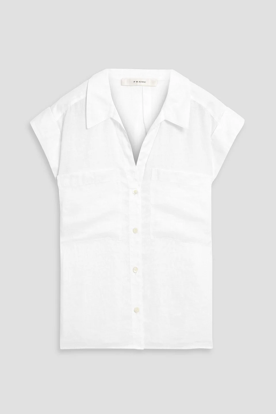 Shirt linen pleated back cap sleeves folded cuffs breast pockets side slit hemline button fastenings through front lightweight, non-stretchy fabric hand wash imported 100% Linen Product Code 46376663163001409