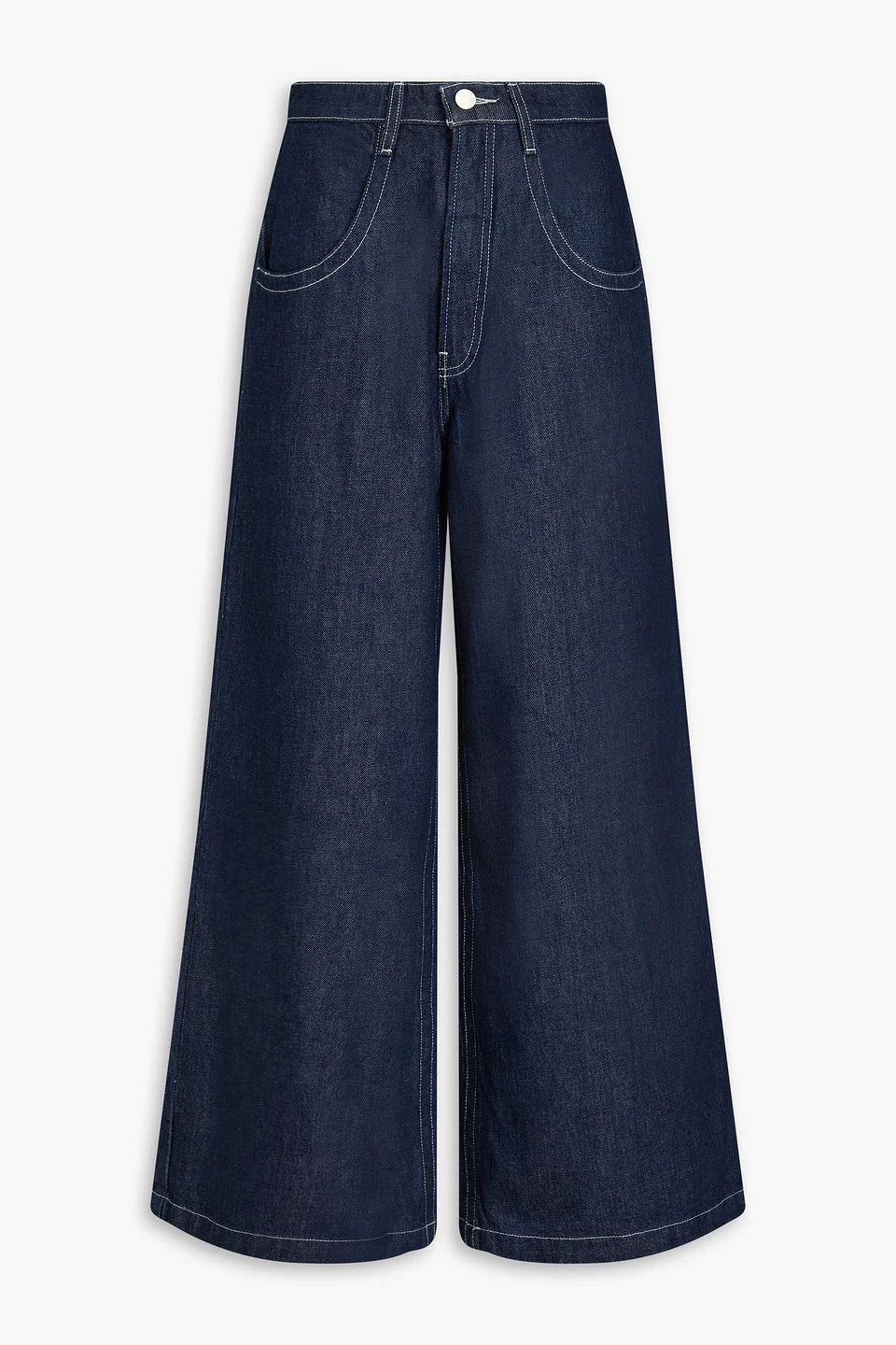 Wide-leg jeans denim high-rise cut two front slant pockets two back patch pockets button and concealed zip fastening at front mid-weight, non-stretchy fabric machine wash imported 80% Regenerated cotton 20% Post-consumer recycled cotton Product Code 1647597333094265