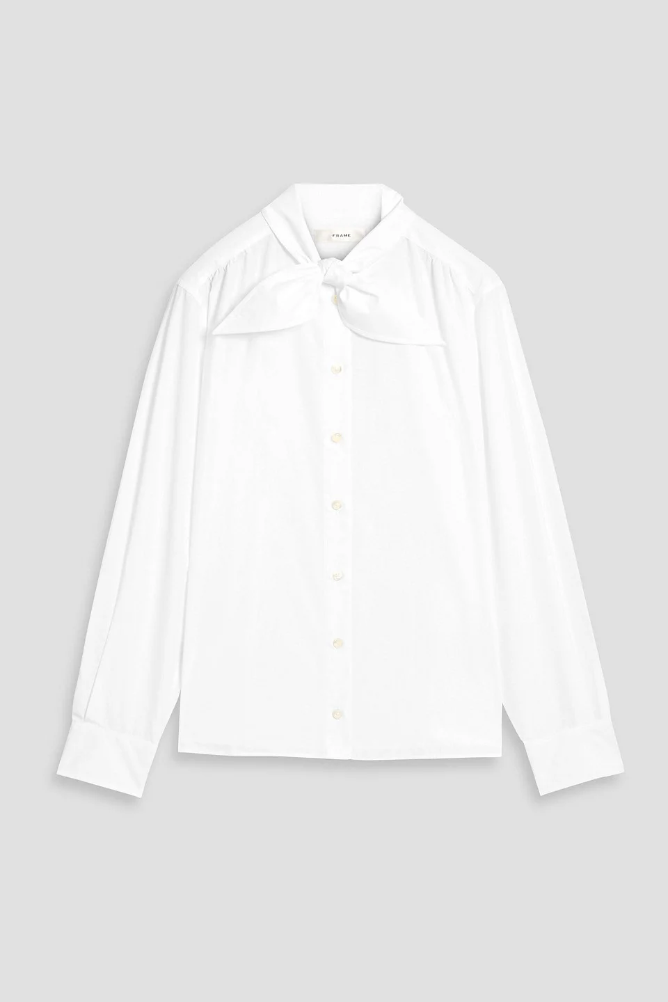 Shirt cotton-poplin bow-detailed buttoned cuffs button fastenings through front mid-weight, non-stretchy fabric machine wash imported 100% Cotton Product Code 46376663162944567