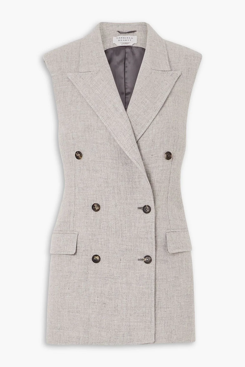 Vest cashmere and linen-blend shoulder pads side flap pockets button fastenings through double-breasted front fully lined back vent mid-weight, non-stretchy fabric dry clean made in italy 50% Cashmere 50% Linen Product Code 46376663163077433