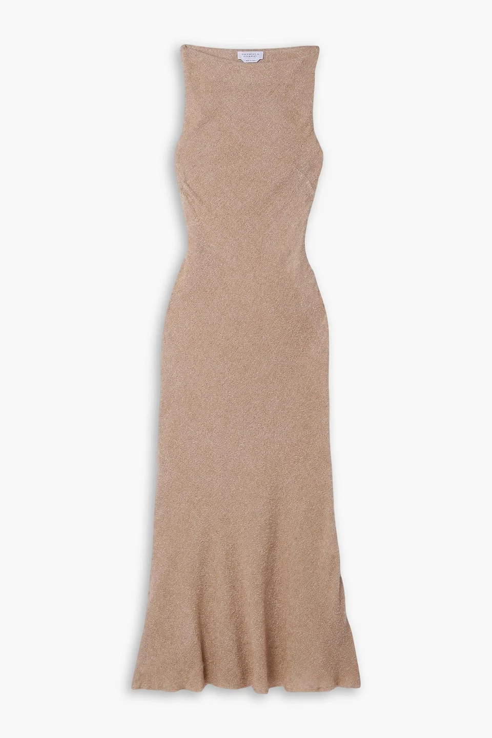Dress boucle-knit silk and wool-blend concealed hook and zip fastening at side fully lined mid-weight knit dry clean made in italy 60% Silk 40% Camel wool Product Code 46376663163076997