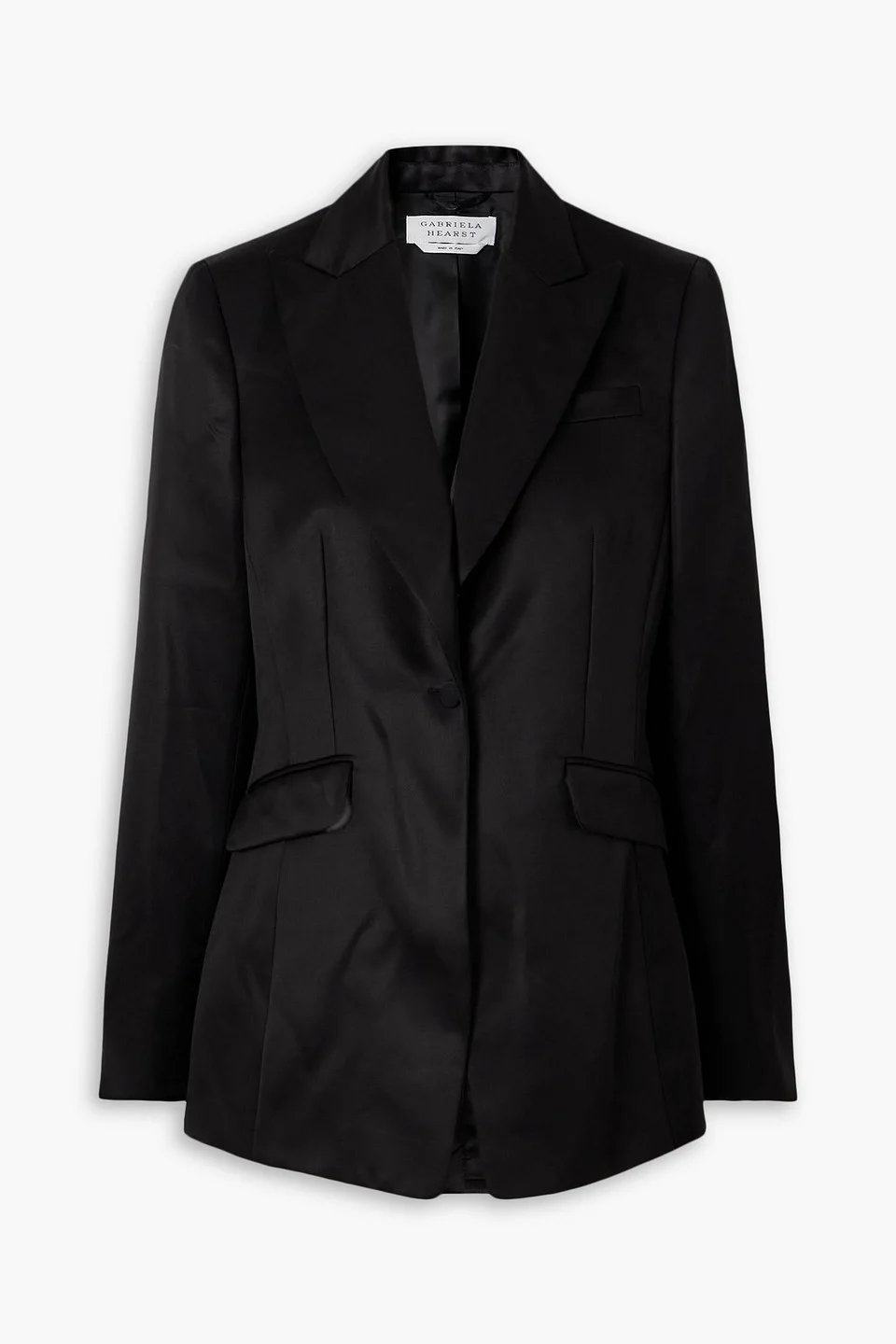 Blazer satin wool and silk-blend crystals breast pocket front flap pockets button fastening at front back vent mid-weight, non-stretchy fabric hand wash or dry clean made in italy 73% Wool 27% Silk Product Code 46376663163074022