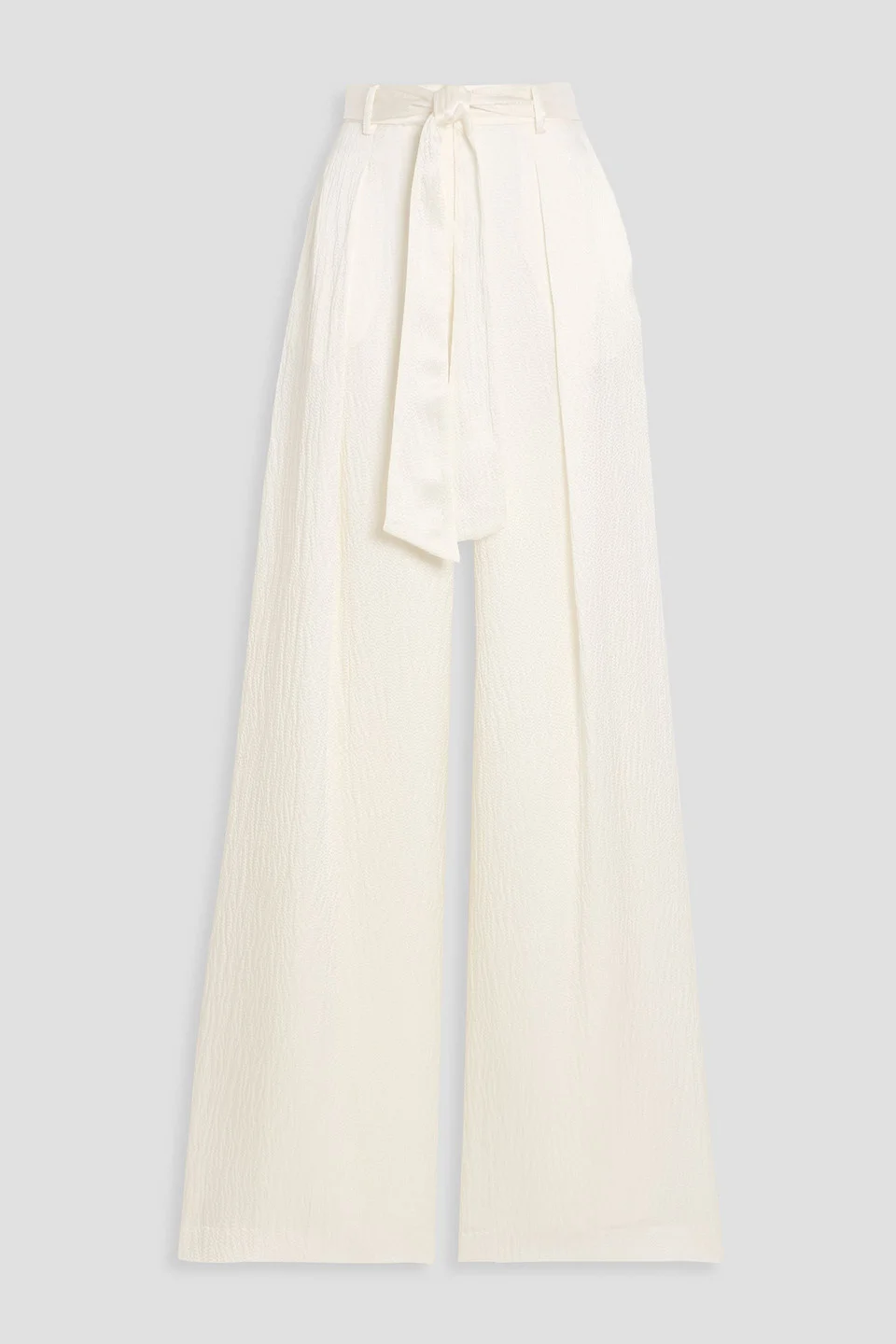 Wide-leg pants silk hammered pleated detachable waist tie front slant pockets belt loops high-rise cut fully lined concealed hook, button and zip fastening at front mid-weight, non-stretchy fabric dry clean made in italy 100% Silk Product Code 46376663163058541