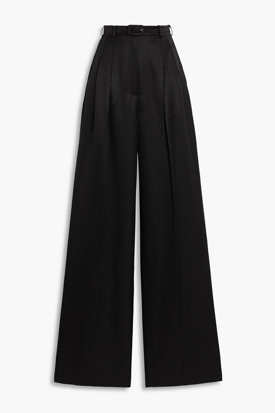 Wide-leg pants silk and linen-blend pleated detachable belt front slant pockets back welt pocket belt loops high-rise cut concealed hook, button and zip fastening at front mid-weight, non-stretchy fabric dry clean made in italy 72% Silk 28% Linen Product Code 46376663163058663