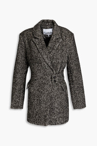 Coat herringbone twill shoulder pads detachable belt buttoned cuffs side flap pockets fully lined button fastenings through front weighted, non-stretchy fabric dry clean imported 68% Recycled polyester 29% Recycled wool 2% Polyamide 1% Acrylic Product Code 1647597348952093
