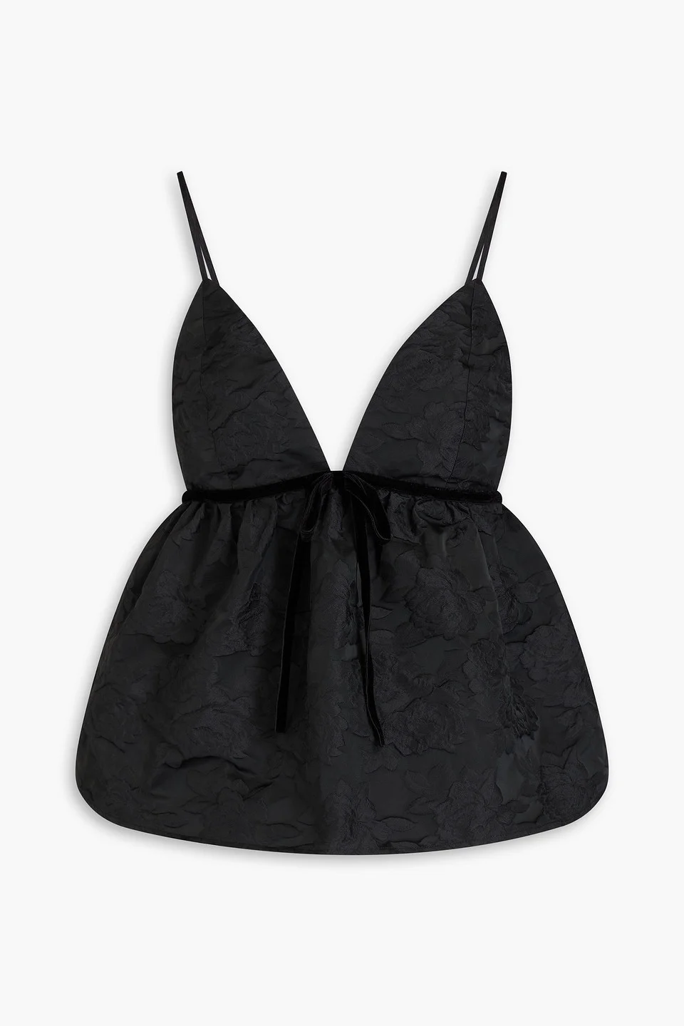 Top floral-jacquard velvet trims gathered bow-detailed concealed hook and zip fastening at side partially lined mid-weight, non-stretchy fabric hand wash or dry clean imported 50% Recycled polyester 45% Polyester 5% Polyamide Product Code 46376663162919400