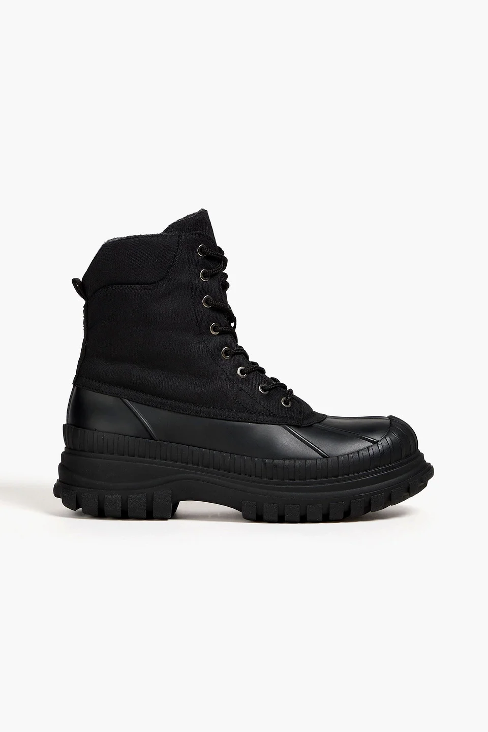 Ankle boots canvas rubber trims round toe lace-up front teddy fleece lining rubber lug sole imported 40% Recycled polyester 40% Rubber 20% Polyester Product Code 1647597348617847