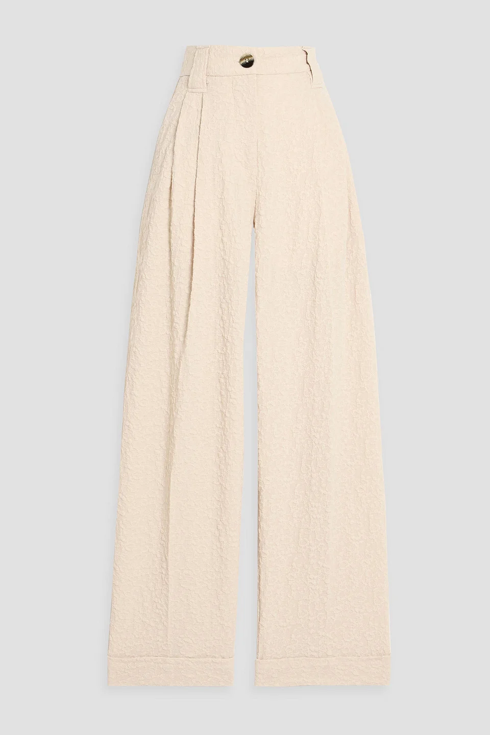 Wide-leg pants cloque pleated front slant pockets back welt pockets belt loops high-rise cut folded cuffs partially lined button and concealed zip fastening at front mid-weight, non-stretchy fabric hand wash or dry clean imported 58% Recycled polyester 42% Polyester Product Code 46376663163019711