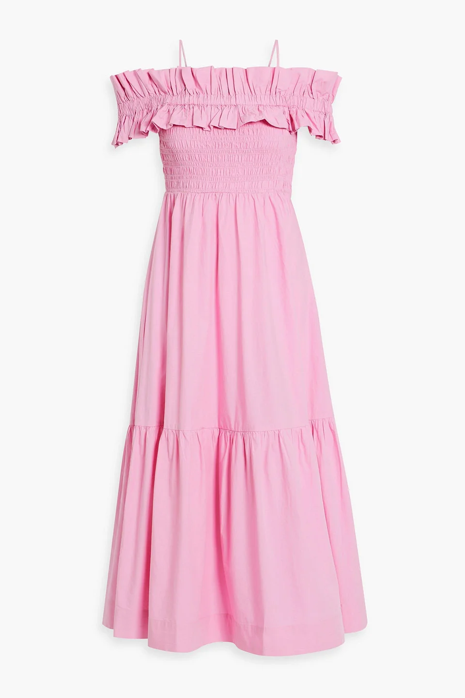 Cold-shoulder shirred cotton-poplin midi dress