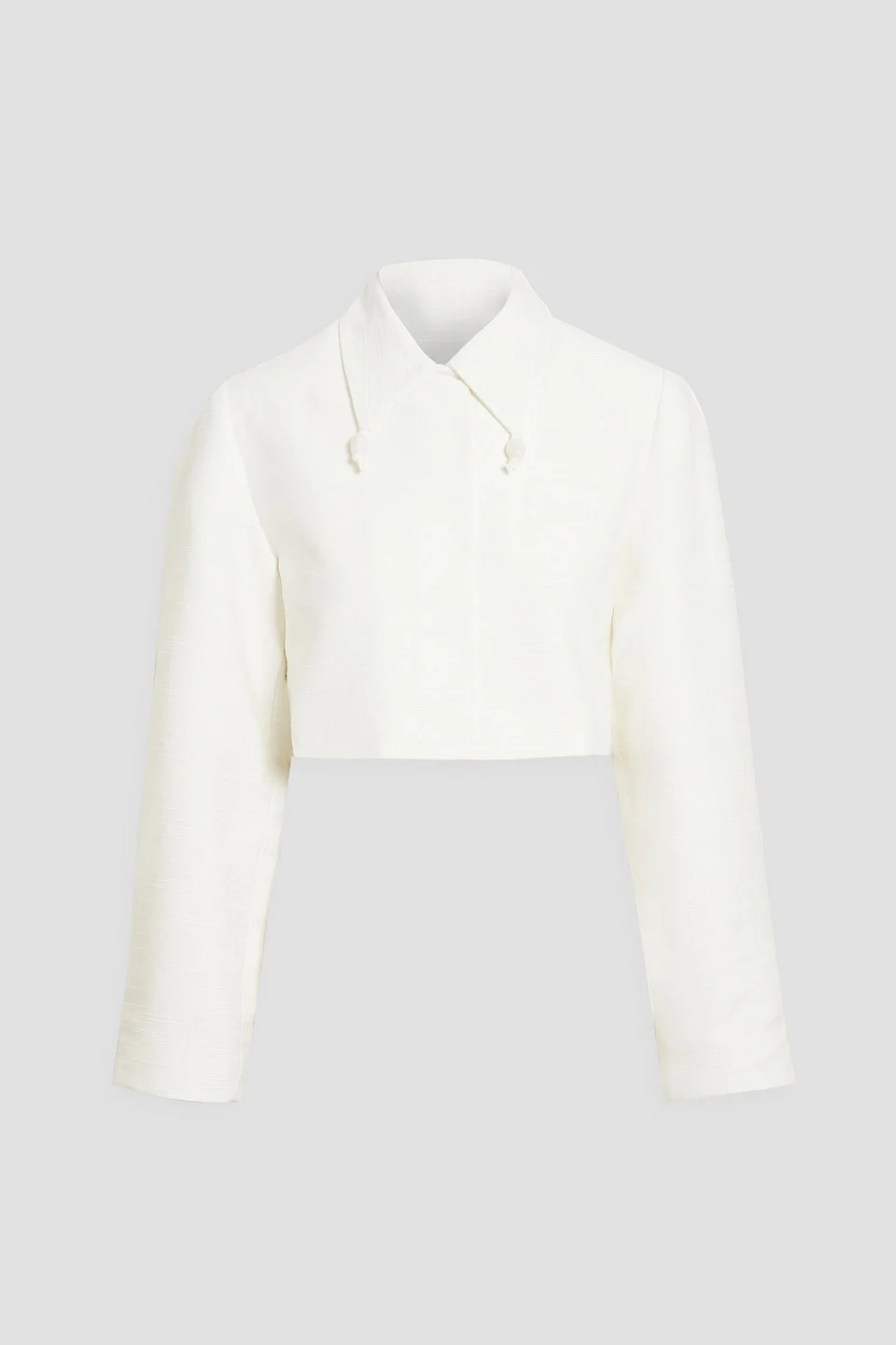 Jacket tweed beads cropped concealed button fastenings through front fully lined mid-weight, non-stretchy fabric dry clean imported 35% Recycled polyester 25% Rayon 24% Polyester 8% EcoVero™ Viscose 8% Linen Product Code 1647597352885457