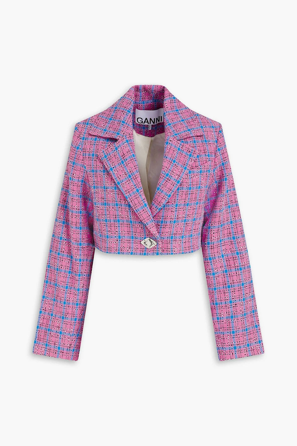 Blazer checked tweed cotton-blend cropped shoulder pads slit cuffs button fastening at front fully lined mid-weight, non-stretchy fabric dry clean imported 77% Organic Cotton 18% Cotton 5% Elastane Product Code 1647597338693270