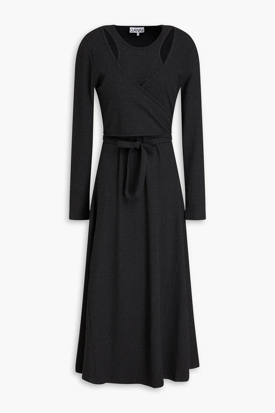 Dress ribbed-knit cutout wrap-effect waist ties slips on lightweight knit machine wash imported 66% EcoVero™ Viscose 28% Recycled polyester 6% Elastane Product Code 1647597349027250