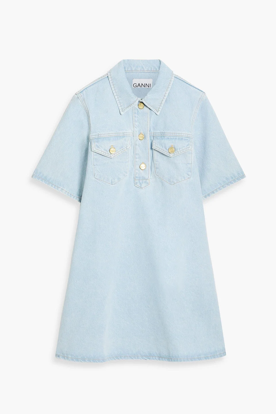 Shirt dress denim breast pockets side slit pockets button fastenings along front mid-weight, non-stretchy fabric machine wash imported 100% Organic Cotton Product Code 46376663162938177