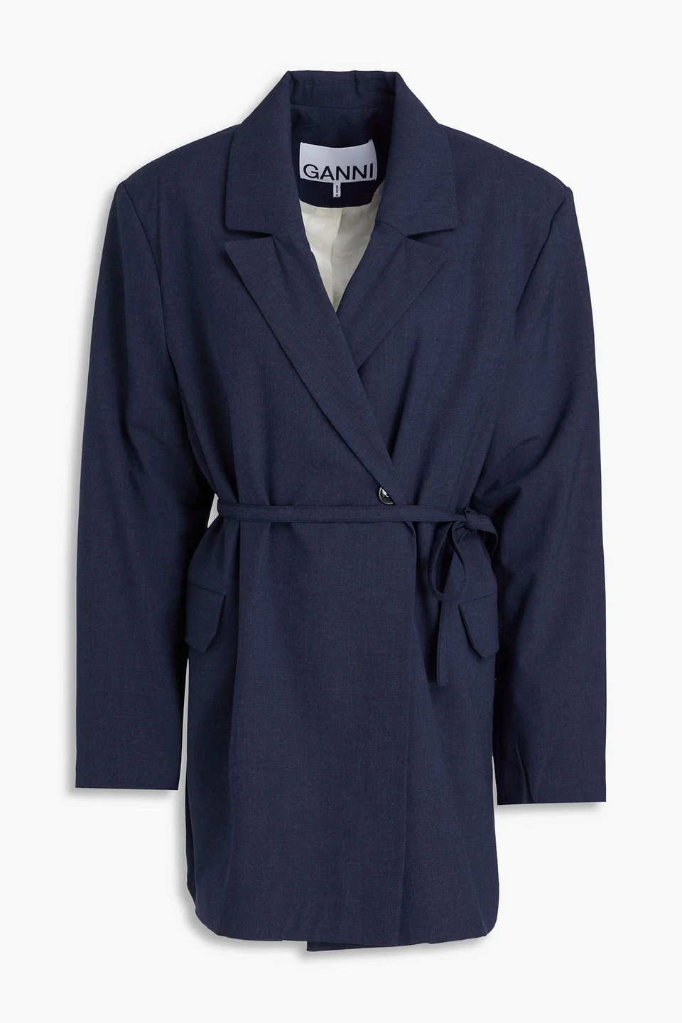 Blazer woven shoulder pads detachable waist tie buttoned cuffs button fastening at double-breasted front fully lined mid-weight, non-stretchy fabric dry clean imported 48% EcoVero™ Viscose 44% Recycled polyester 5% Elastane 3% Polyester Product Code 1647597348968775