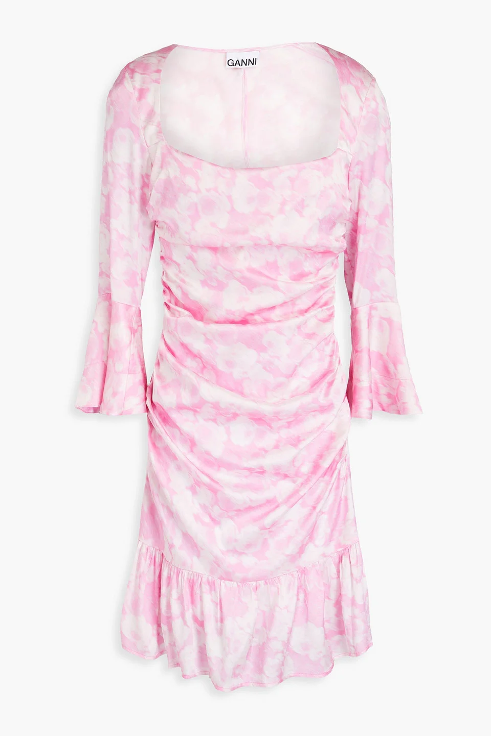 Dress printed satin silk-blend shirred trims draped concealed zip fastening along side non-stretchy fabric mid-weight fabric hand wash imported 92% Organic silk 8% Elastane Product Code 1647597336587033