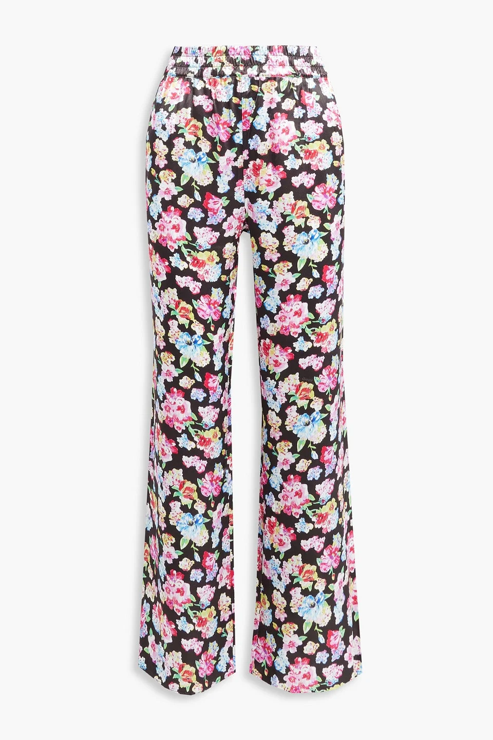 Wide-leg pants floral-print satin elasticated waistband high-rise cut pull on non-stretchy fabric lightweight fabric machine wash imported 100% Viscose Product Code 1647597289563484