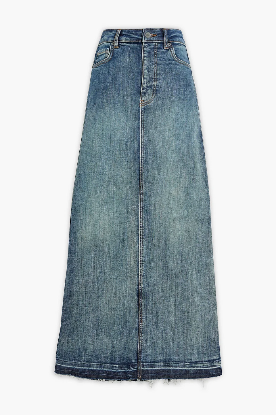 Frayed denim maxi skirt