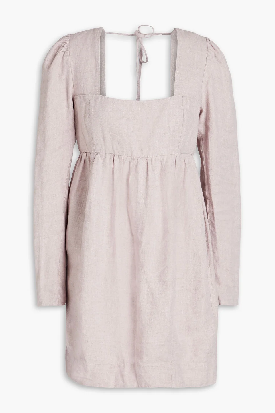 Dress hemp gathered two side slit pockets concealed zip fastening along back ties at back non-stretchy fabric mid-weight fabric machine wash imported 100% Hemp Product Code 1647597307968870