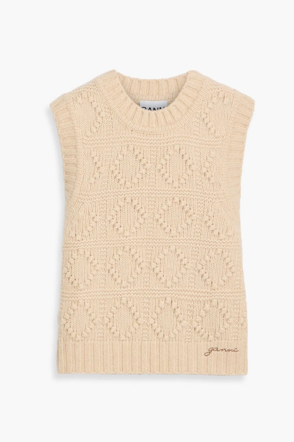 Vest jacquard-knit wool and cotton-blend embroidered logo ribbed trims slips on mid-weight knit hand wash or dry clean imported 55% Wool 45% Cotton Product Code 46376663162938179