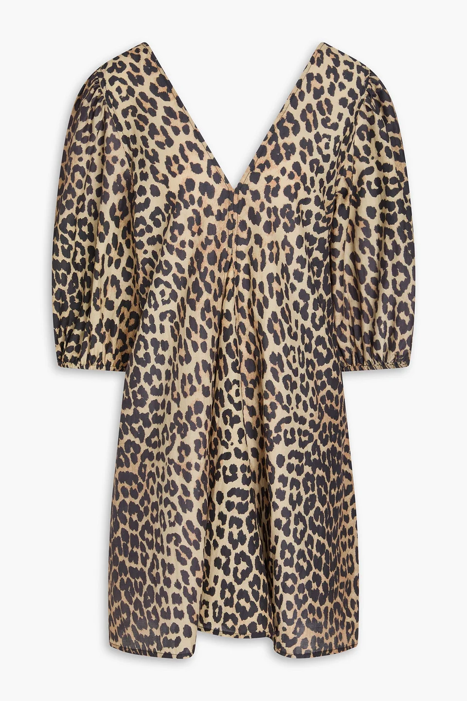 Dress leopard-print cotton and silk-blend gathered sleeves elasticated cuffs two side slit pockets slips on mid-weight, non-stretchy fabric machine wash imported 70% Cotton 30% Silk Product Code 1647597348948292
