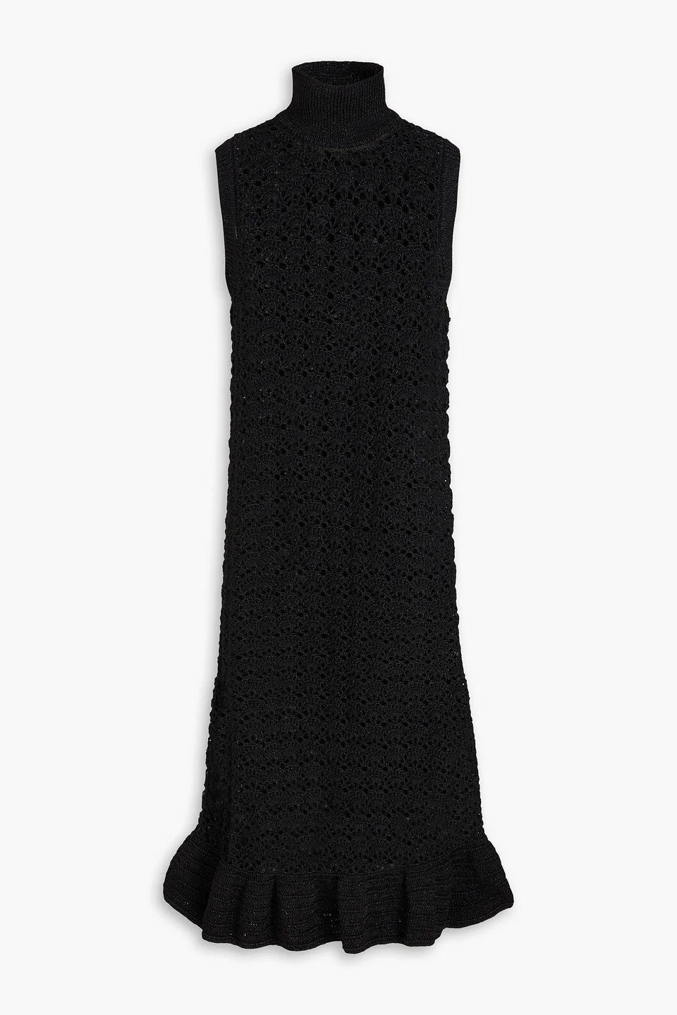 Dress metallic crochet ribbed trims ruffled hem slips on mid-weight open knit hand wash or dry clean imported 62% Polyamide 38% Metallic fiber Product Code 1647597336577198
