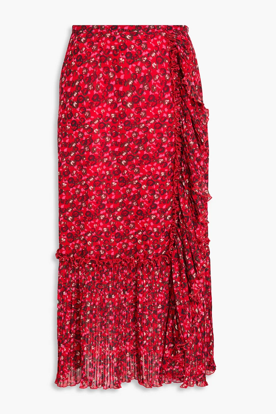 RED PLEATED GEORGETTE FLOUNCE MIDI SKIRT