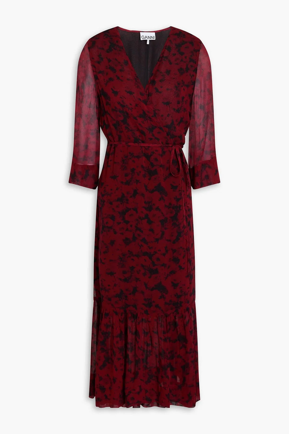 Printed georgette midi wrap dress
