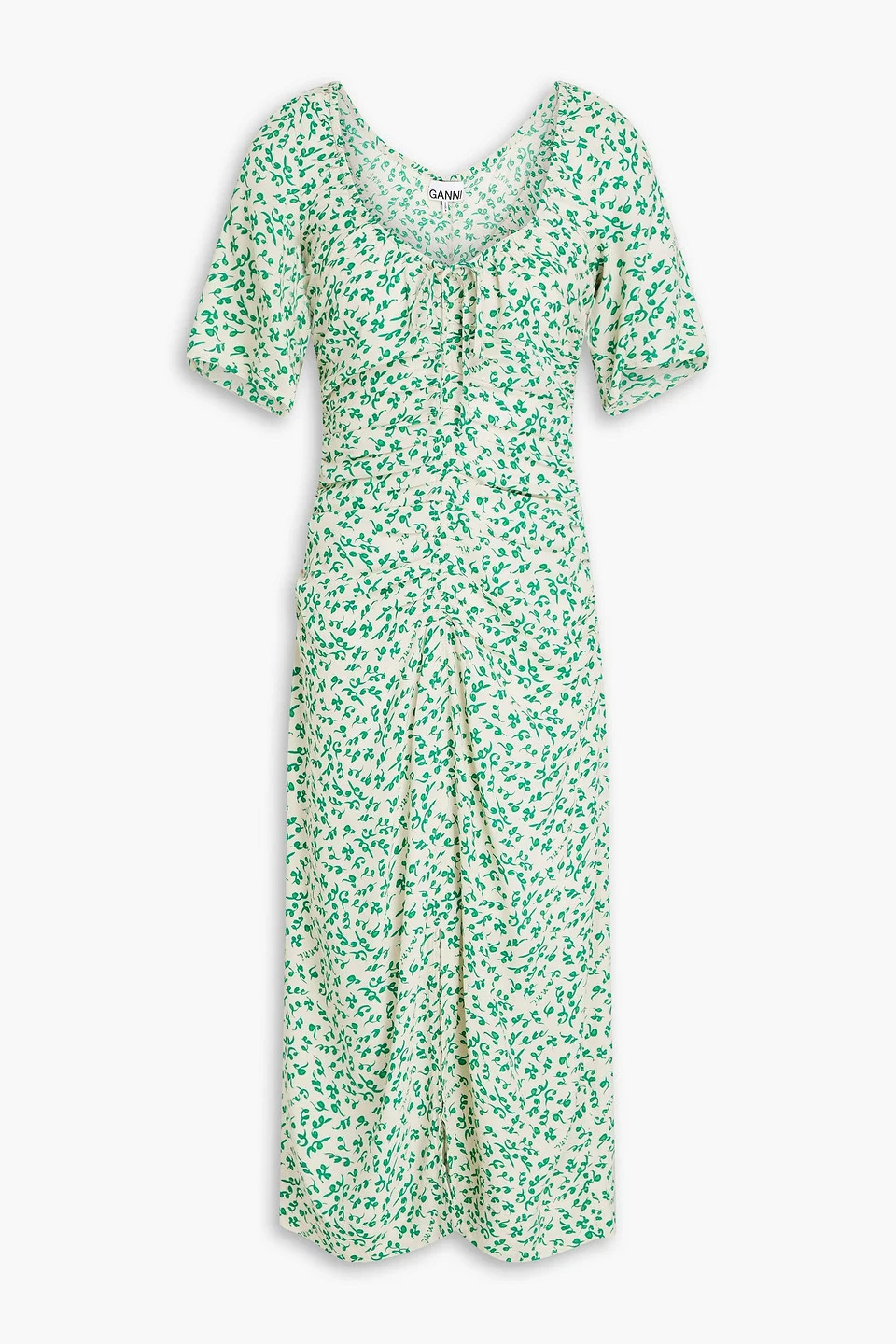 Dress printed crepe bow-detailed ruched front slit concealed zip fastening along side lightweight, non-stretchy fabric machine wash imported 53% Viscose 47% EcoVero™ Viscose Product Code 1647597348988688