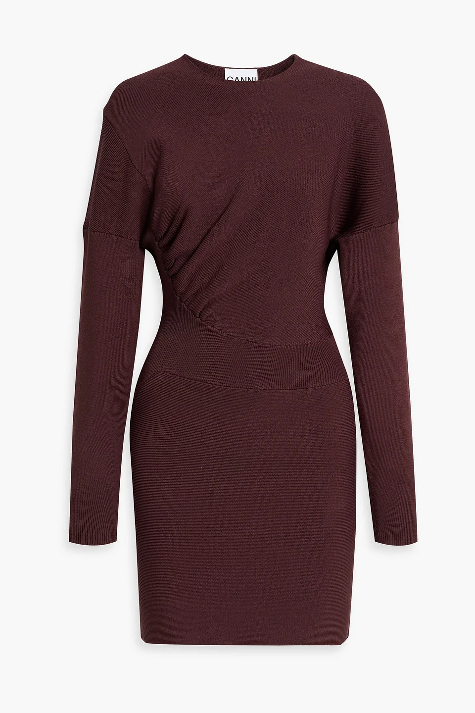 Ruched ribbed-knit mini dress